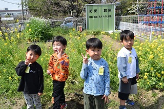 今日はペンギン組のお友達は園庭で遊びました。 畑や園庭に咲いているお花に興味を持ったようで、お友達と一緒に眺めながら お話を楽しんでいました。 きれい…