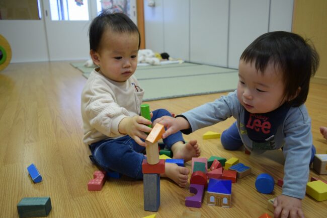 今日は、園庭に出て遊びました(*^-^*) 乗り物や先生と鬼ごっこをして元気に遊んでいました! 職員は先生向けのラキュー講座に参加しました(^_-)-☆ 講師の方に教えてもらい、いろいろな組み立て方を知ることが出来ました…