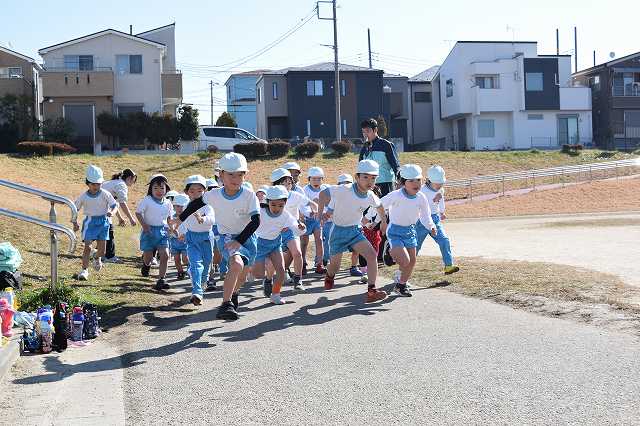 今日は幼稚部のお友達がマラソン大会を行いました。 ますはしっかり準備体操で体をほぐし、みんなやる気満々です。 スタート地点ではライオン組のお友達が、足踏みをしながら…