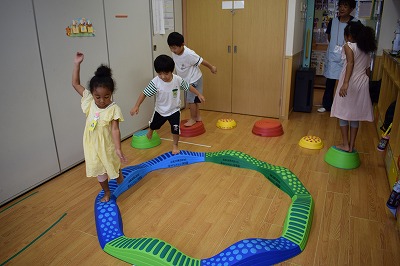 ペンギン組さんは、初めてのプチ体操教室に参加しました(^^)/ 先生の話をよく聞き、マットの上を転がったり平均台を渡ったりして 体を動かしました(*^^)v 元気に参加することが出来ました! その後は、ポストにお手紙を投…