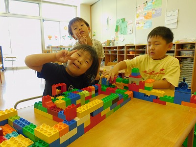 今日は、午前中水遊びを行いました(^^)/ みんな元気に先生やお友達と遊んでいました! 午後は、お部屋の中で遊びました♩ 幼稚部のお友達は、自分たちで好きなおもちゃを選んで遊んでいました(^_-)-☆ 保育部のお友達は、…