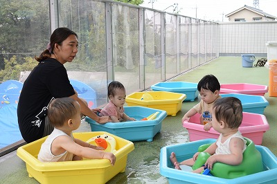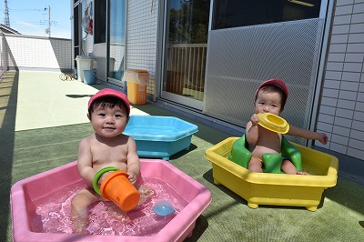 今日はラッコ組のお友達がベランダで水遊びを楽しんでいました。 みんなとっても気持ちよさそうです。 お水遊びにもすっかり慣れて、パシャパシャと水の感触を楽しんでいました。 &nbs…