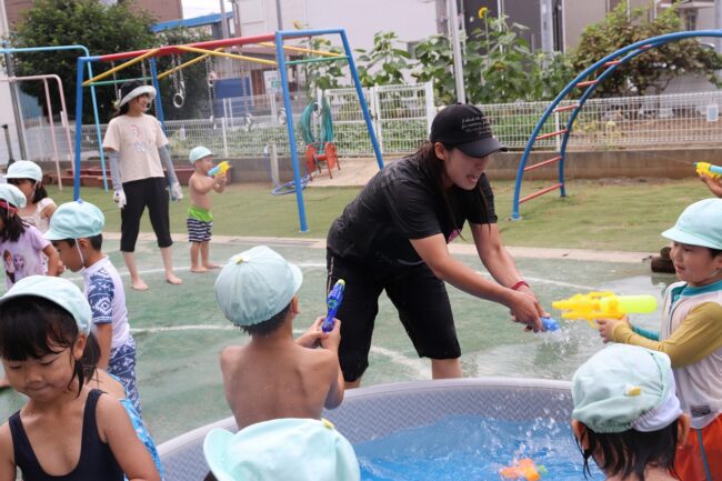 今日は、保育士体験がありました 今回は、幼稚部の保護者の方4名に参加いただきました 午前中は、プール遊びがあり、保護者の方で子ども達と本気で遊ぶ姿もありました 子ども達も保護者の方に水をかけにいったりする姿があり子ども達…