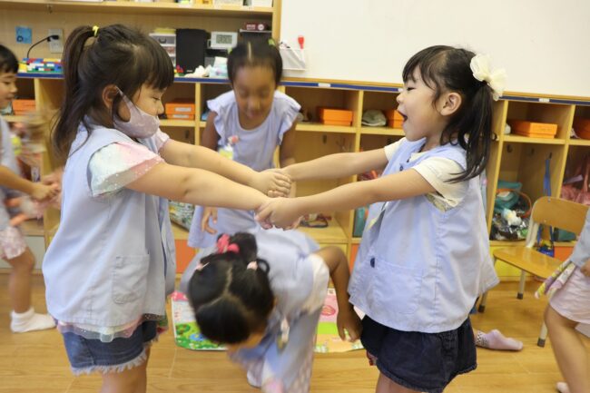 今日はクラス交流を行いました。 ラッコ組はパンダ組と一緒にリズム🎵 ペンギン組はライオン組、イルカ組はキリン組と一緒にそれぞれ園庭で …