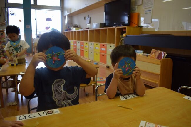 今日はイルカ組の様子です 午前中は英語指導をゆりこ先生と取り組みました イラストや音楽で楽しみながら英語に触れていきました お返事や講師の真似などをして楽しんでいました 午後は七夕制作を行いました 星にいろんな色のシール…
