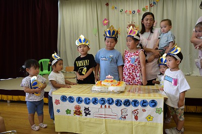 今日は6月生まれのお友達・先生たちのお誕生日会を行いました。   お名前を呼ばれると、元気にお返事をしてニコニコ笑顔で舞台に上がってきてくれました。   インタビューにもみんな上手に答えてくれました。…