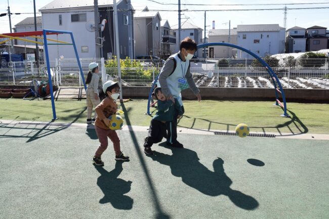 今日の午前中は保育部、幼稚部で園庭で遊びました 園庭では、それぞれ取り組みたい遊びなどを考え友達や保育者と 一緒に遊びを楽しんでいました ボランティアで来ていただいている先生とはボールを使って遊びました ボールの蹴り方な…