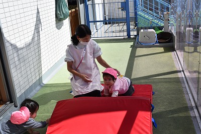 今日はお部屋の中で、テントとボールを出して遊びました。 ボールをテントいっぱいに敷き詰めて、ベットを作ったりしているお友達や テントの窓から「ばあ!!…
