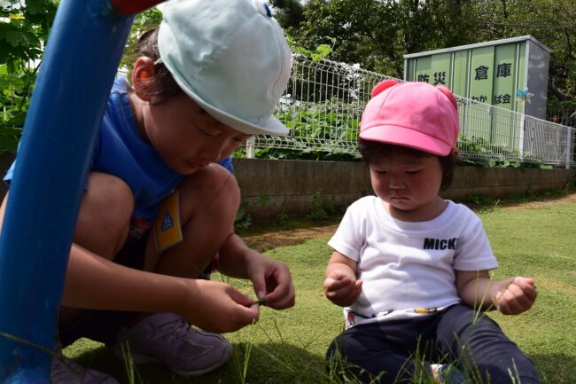 今日は両新田小学校の校庭をお借りして、マーチングの練習をしました。 パンダ組のお友達は広々とした校庭で、元気一杯ダンスすることができました。 大きな声でお友達と掛け…