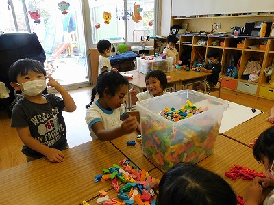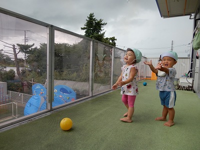 今日は、幼稚部さんと保育部さん合同で遊びました♪ テラスに出て、ボール遊びやシャボン玉を追いかけて遊びました☆ 「きゃー」「まってー」と言いながら元気に追いかけていましたよ!  …