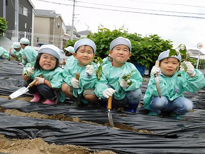 今日はさつまいもの苗の植え付けを行ないました。 幼稚部さんやイルカ組さんはお友達と楽しく植え付けをおこないました。 シャベルの使い方もとっても上手です。  …