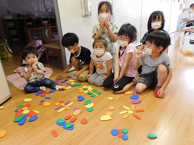 今日はお部屋の中で自分達の好きなおもちゃを出して遊びました。 おままごと遊びでは、お店屋さんとお客さんに分かれて遊びました。 お料理に夢中になっているお友達もいます…