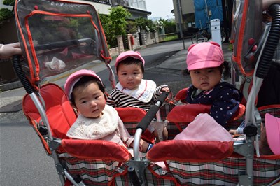 ラッコ組のお友達はカートに乗って、 治水緑地や辰井川沿いまでお散歩に出かけました。 たんぽぽの綿毛やシロツメクサのお花に興味を持って、触…