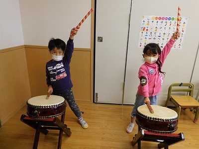 今日ライオン組のお友達は 7月の夏祭りに向け、和太鼓の練習を 行ないました☆ まずはバチの持ち方や、足の開き方、叩き方などを 学びます! 実際に太鼓を叩いてみると 力強い音が響き…