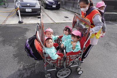今日ラッコ組のお友達は 辰井川沿いをお散歩しました♪ 「いってらっしゃーい」と手を振ると ニコニコ笑顔で手を振ってくれるお友達もいました☆ 車やバイク…
