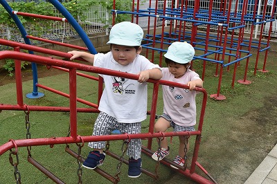 今日はみんなで園庭で遊びました♪ 保育部のお友達はゆらゆらな太鼓橋を上手に渡れるようになりました! 幼稚部のお友達は人工芝生の裏をめくったり園庭の隅を覗いたりして虫…