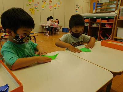 今日幼稚部のお友達は治水緑地で遊びました! 虫やお花を探したり、鬼ごっこを楽しんでいました☆ 午後パンダ組のお友達は 順番に折り紙を行ないました♪ &…