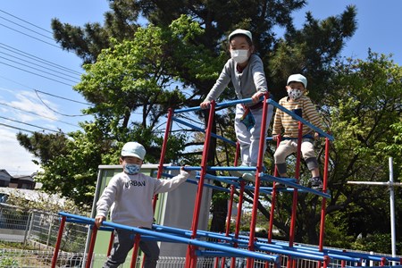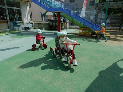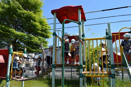 今日は保育部、幼稚部のお友達みんなで園庭に出て遊びました♪ 幼稚部のお友達はジャングルジムの上までスラスラ登る事ができます☆ お友達と三輪車に乗って、サイクリングを…